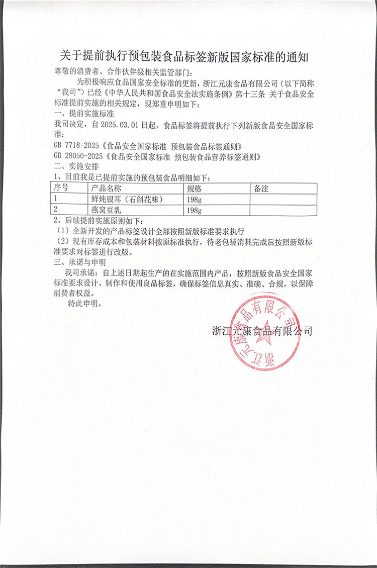 關(guān)于提前執(zhí)行預(yù)包裝食品標(biāo)簽新版國(guó)家標(biāo)準(zhǔn)的通知